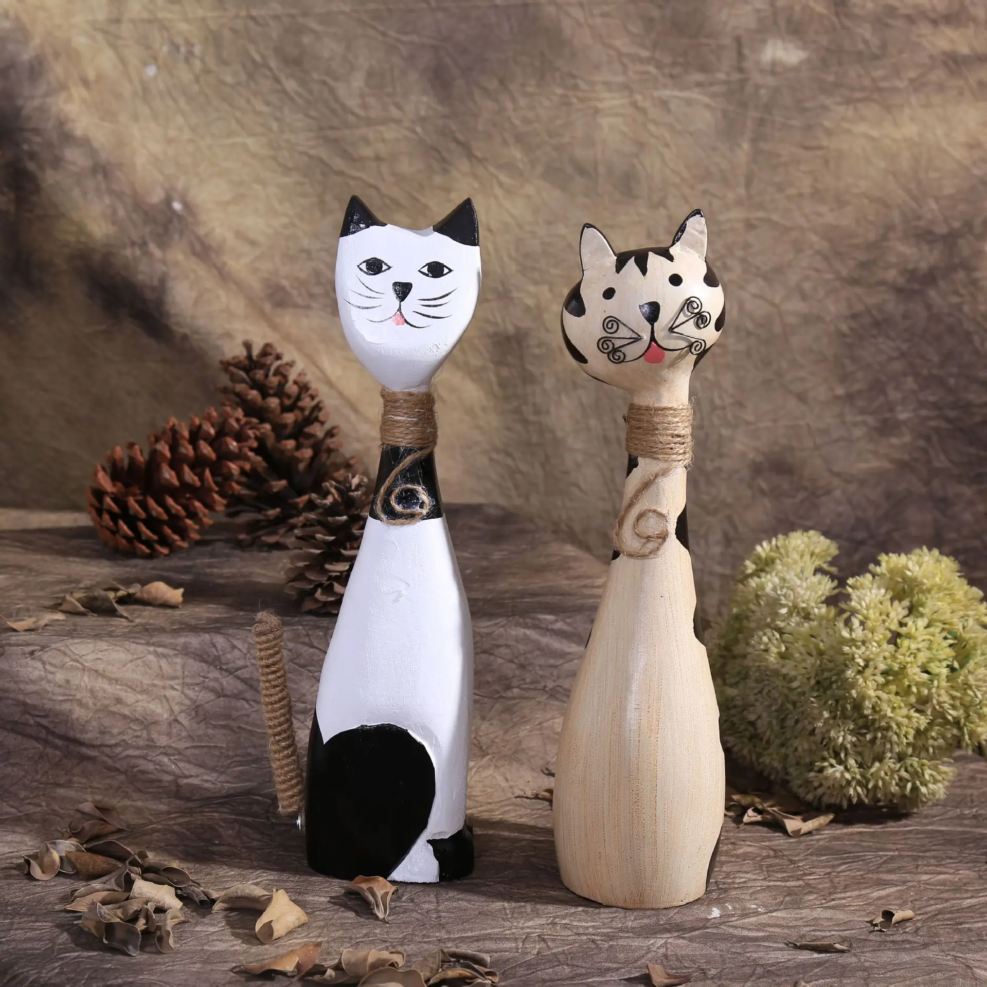 HOT SALE Animal Decoration Cute Couple Kitten Sculpture Wooden Crafts Holiday Gift Home Desk Garden Decorati