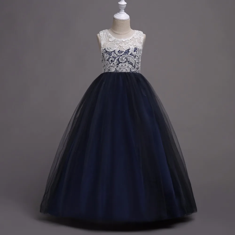 BEST QUALITY Kids Girls pink Wedding dress Lace Long Baby Girl Dress Princess Party Pageant Christmas holiday dr